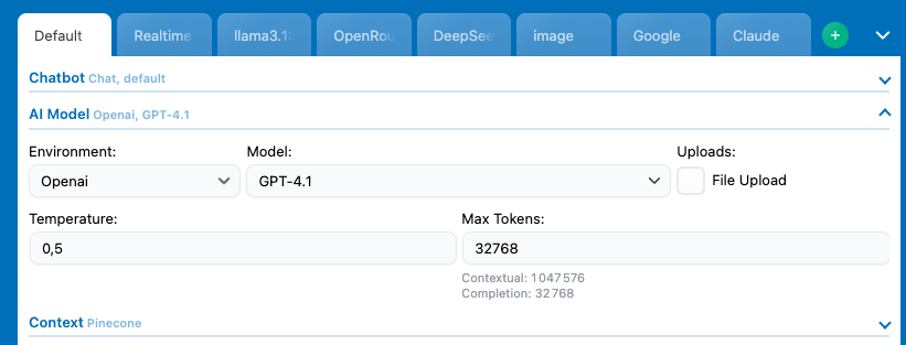 In the AI Model section, choose the environment you just created and the model you wish to use. If you do not make a selection here, the system will automatically apply your default settings, which can be found under Settings > AI > Defaults.