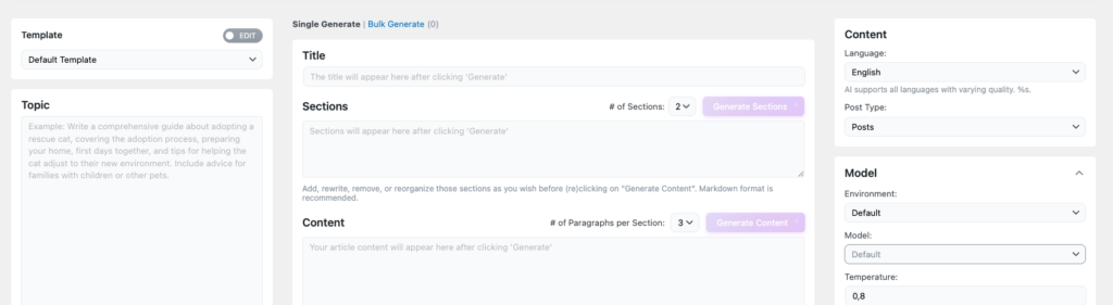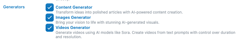 The Content Generator is not intended to be a tool for producing high-quality, publish-ready content. That’s why it is not receiving ongoing updates or advanced configuration options. Its primary purpose is educational: to help users explore ideas and experiment with AI-generated text.