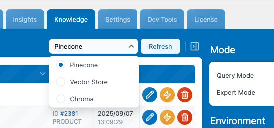 By default AI Engine uses 1536 (ada-3), so unless you have changed it, make sure it matches. In the example here we are using ada-3-small but feel free to use large or ada-2 if you want to, just make sure the dimensions are matching!